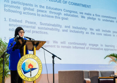 The Educators Congress is an important initiative that aims to integrate peace education into higher education curricula in partnership with the Global Peace Foundation. By doing so, it hopes to contribute to the achievement of a just and lasting peace in the country and pave the way for sustainable development. It serves as a platform to empower educators to develop and implement peace education programs that nurture potential peace educators and encourage the growth of moral and innovative leaders. It does this by showcasing the best practices and exemplary initiatives among Higher Education Institutions (HEIs) and creating a transformative environment for peace education. Through this key component, the Educators Congress seeks to leave a lasting impact on the education system, youth leadership, and the overall pursuit of peace and sustainable development in the country.